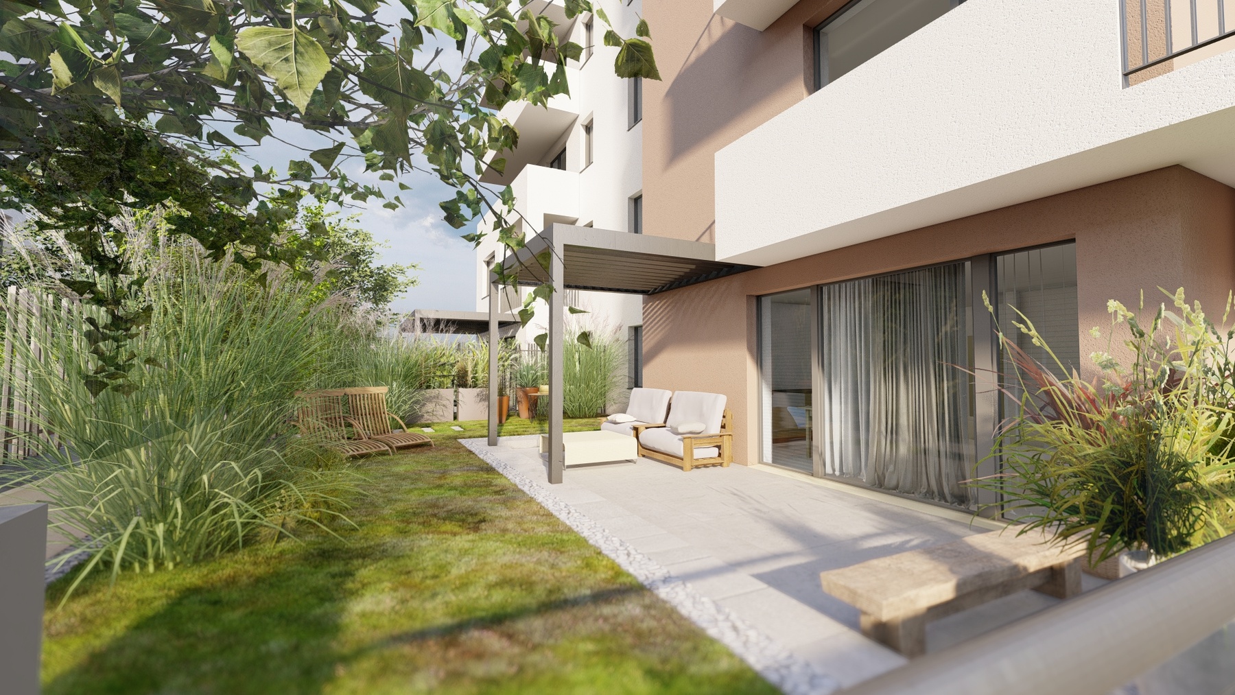 12.4.2024 Malá ochutnávka toho jak budou vypadat předzahrádky u bytů ve 3.NP.