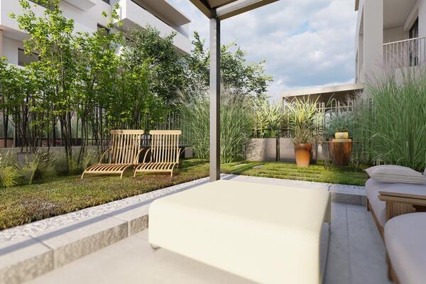 Součástí každé bytové jednotky je sklep a u většiny balkon či terasa, s možností přikoupení parkovacího stání včetně boxu na jízdní kola.